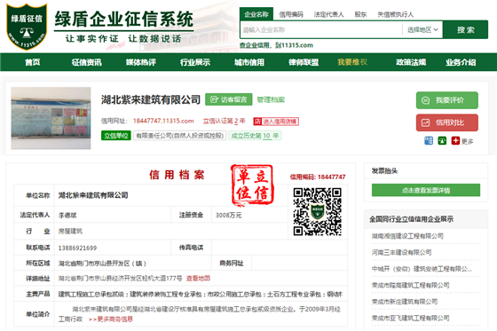 良好的信用狀況是企業經營成功的秘訣。紫來建筑成功中標的事實,留給我們的啟示是深刻的。在市場競爭日益激烈的今天,擁有良好的信用狀況至關重要。依托知名的、有央行企業征信業務備案資質的第三方大數據征信平臺建立完善信用檔案,展示信用狀況,提高信用等級和信用形象,也是企業決策者不可忽視的重中之重。