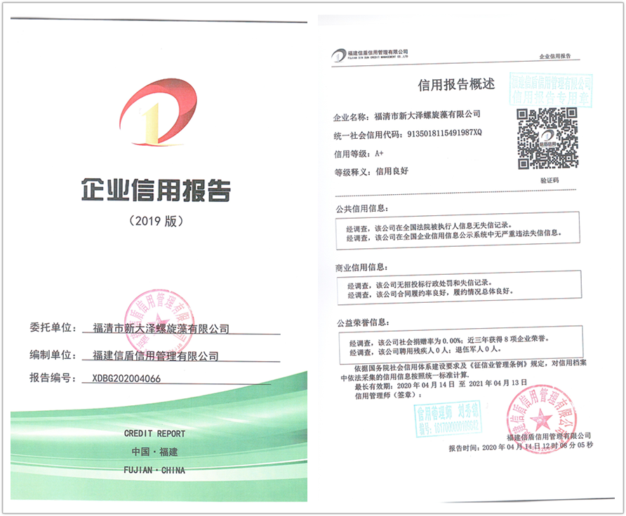福清市新大澤螺旋藻有限公司2020