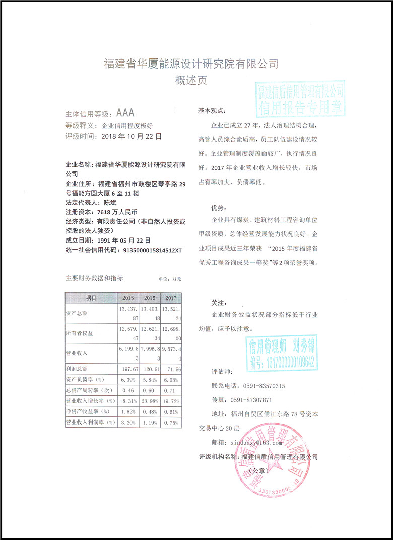 福建省華廈能源設計研究院有限公司2018