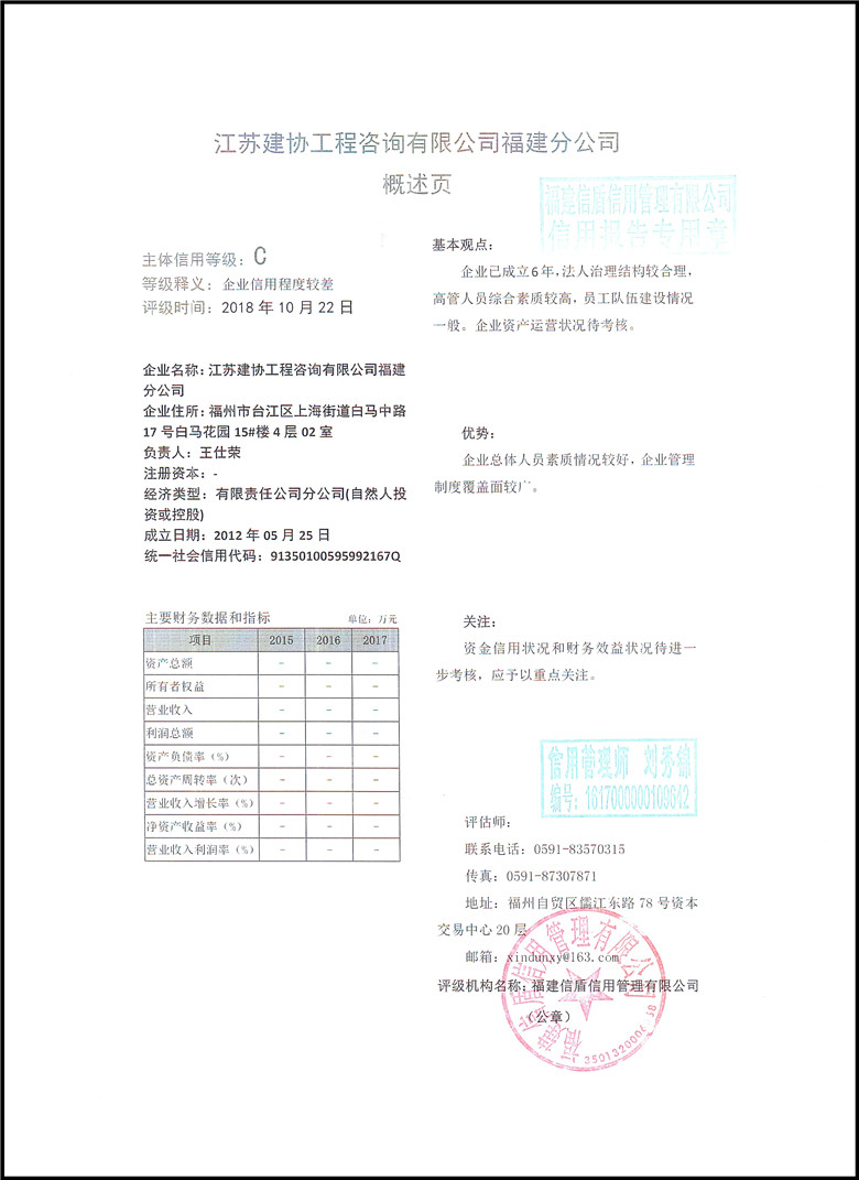 江蘇建協(xié)工程咨詢有限公司福建分公司2018