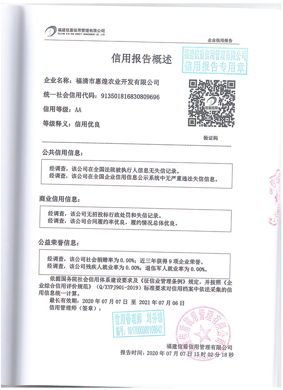福清市惠煌農業開發有限公司2020-1
