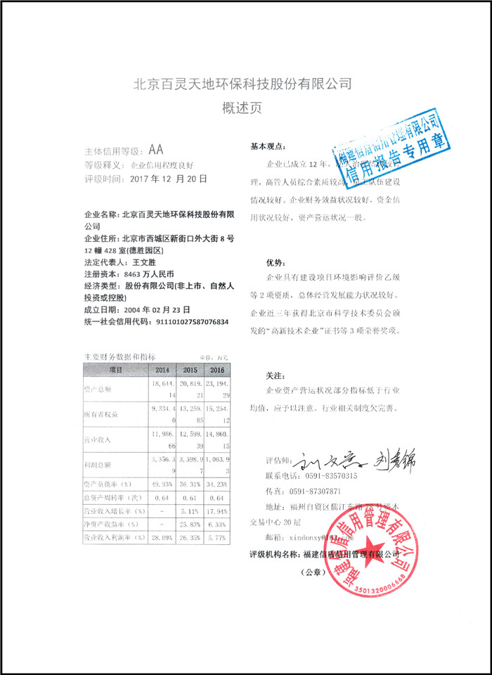 北京百靈天地環(huán)保科技股份有限公司 XDPJ201712201