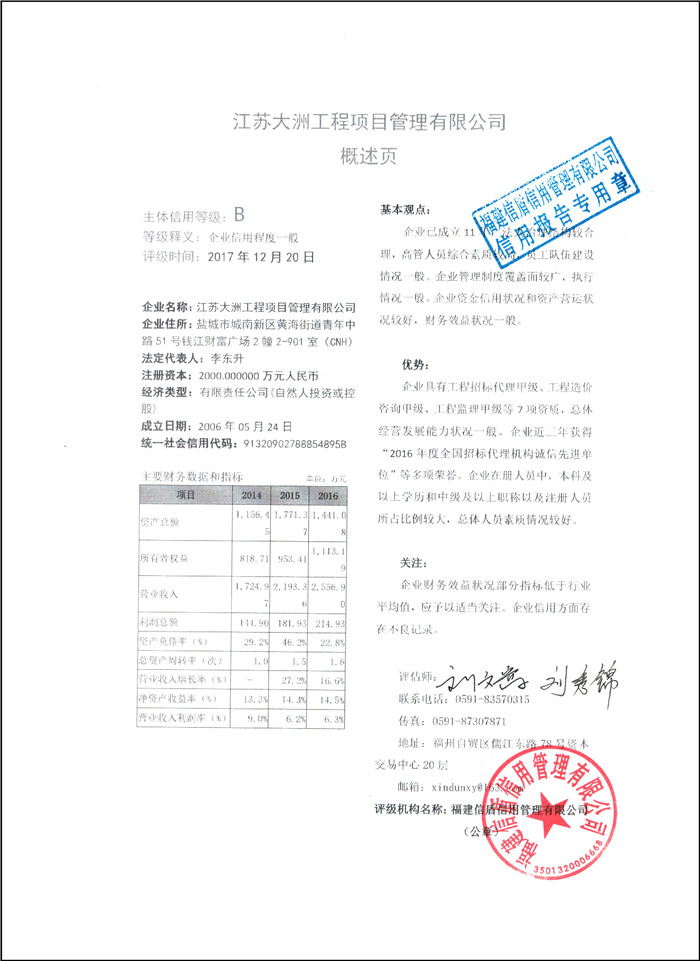 江蘇大洲工程項(xiàng)目管理有限公司 XDPJ201712206