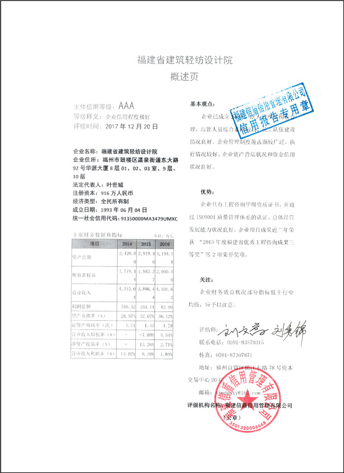 福建省建筑輕紡設計院 XDPJ201712232