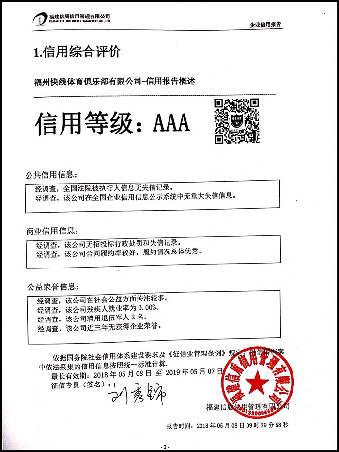 福州快線體育俱樂部有限公司 XDBG201805003