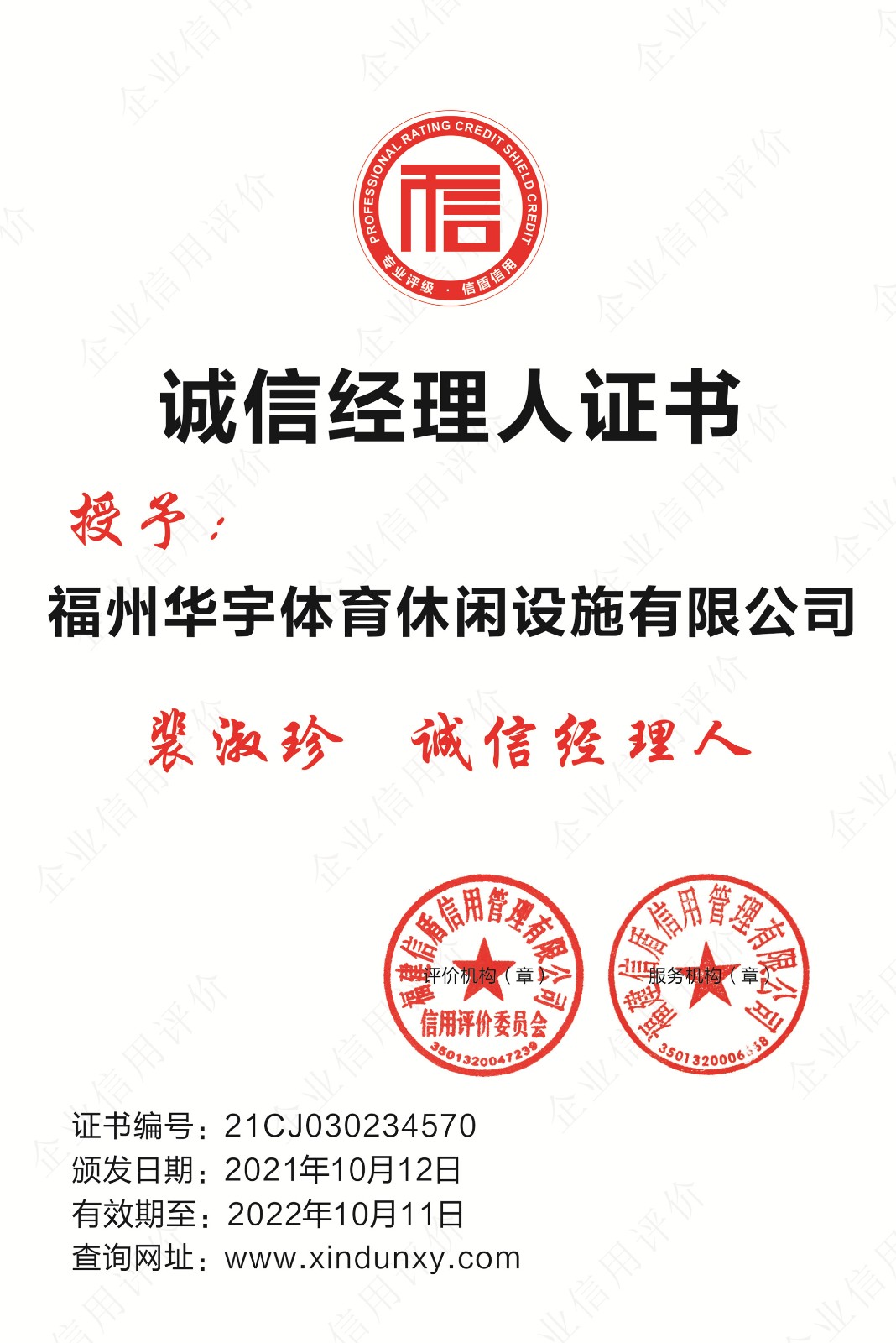 福州華宇體育休閑設施有限公司2021