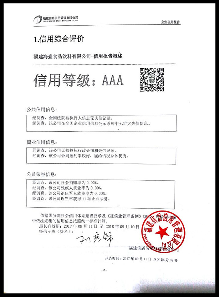福建海壹食品飲料有限公司 XDBG201709014