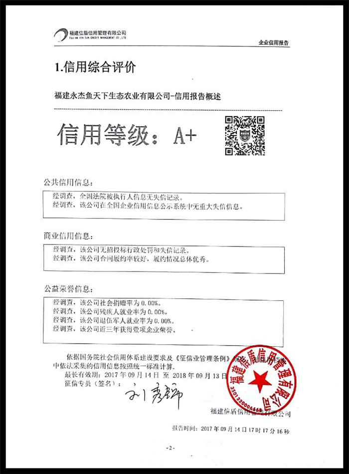 福建永杰魚天下生態(tài)農(nóng)業(yè)有限公司 XDBG201709019
