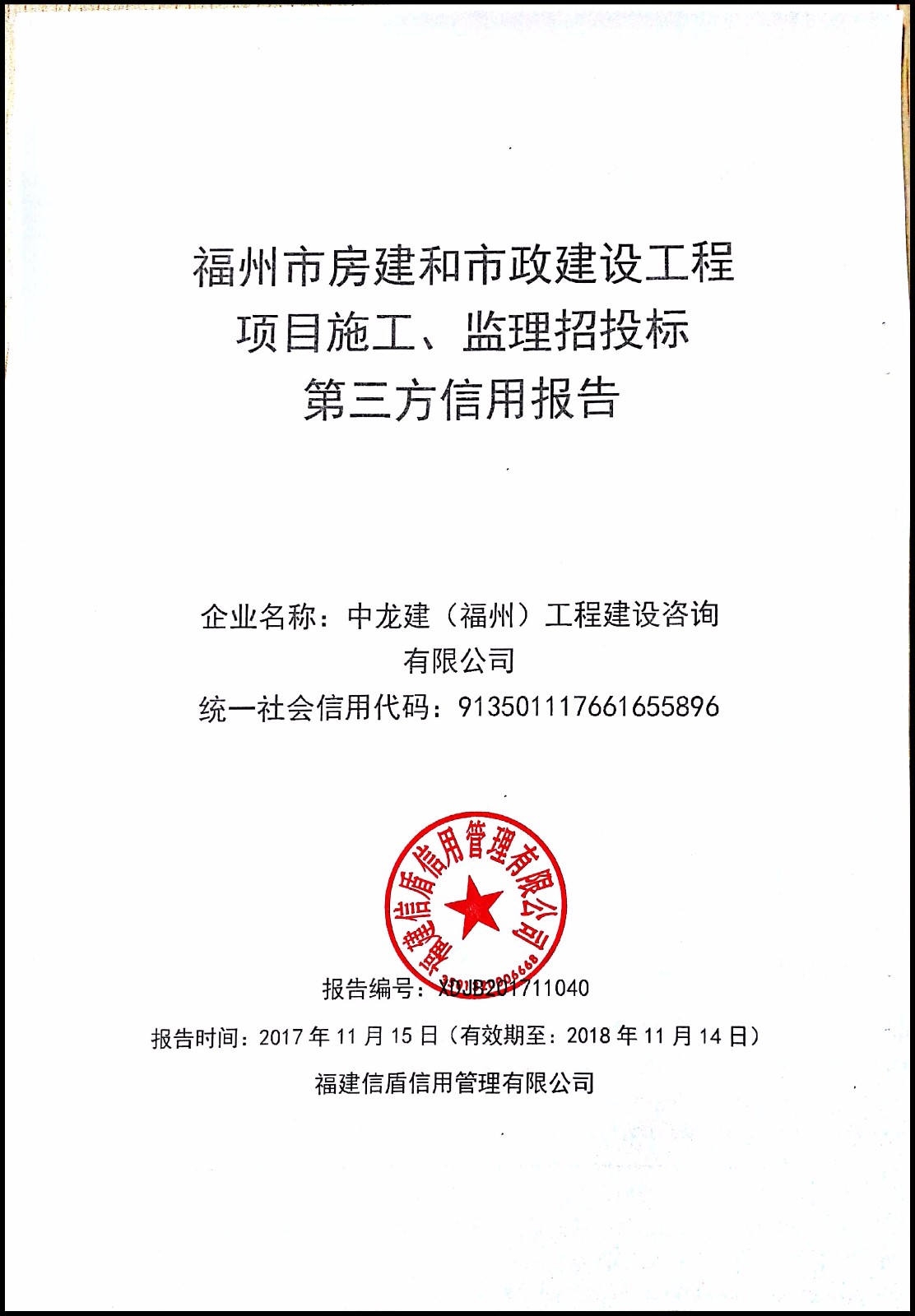 中龍建(福州)工程建設(shè)咨詢有限公司 XDJB201711040