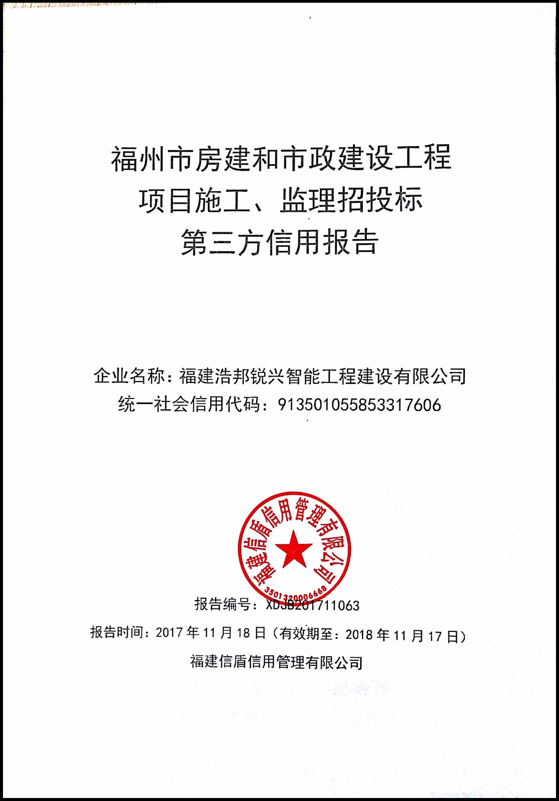 福建浩邦銳興智能工程建設有限公司 XDJB201711063