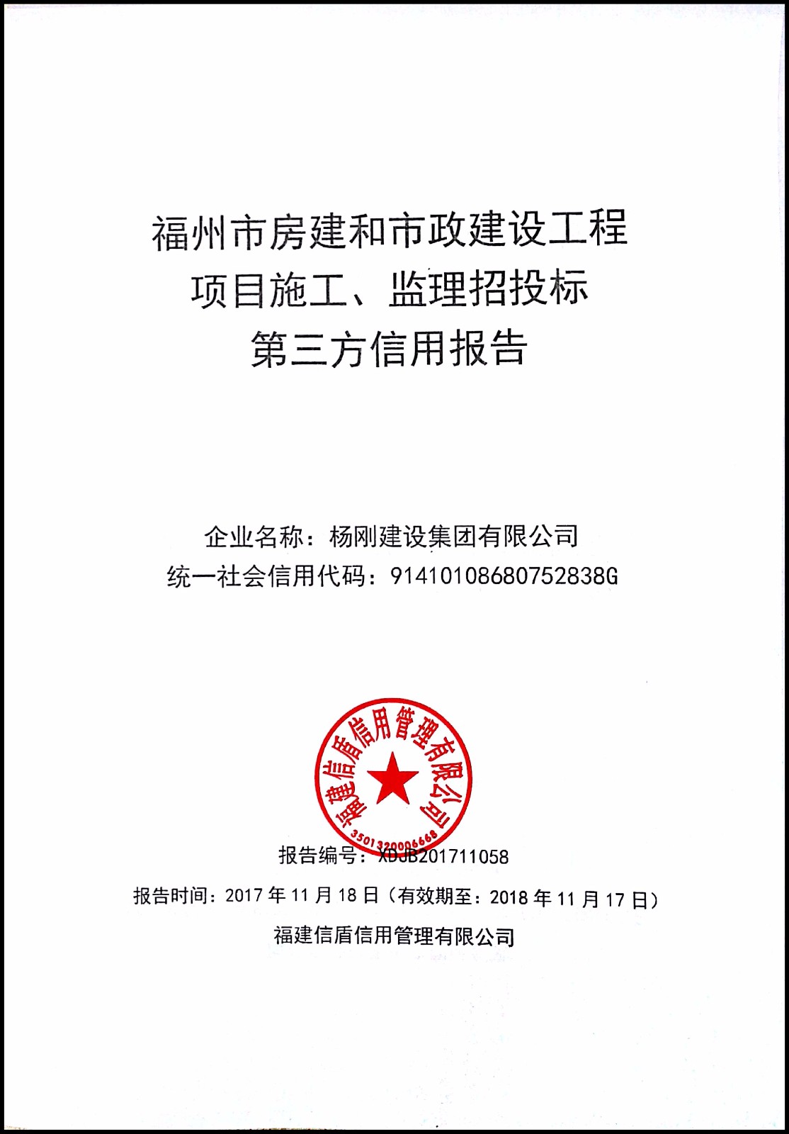 楊剛建設集團有限公司 XDJB201711058