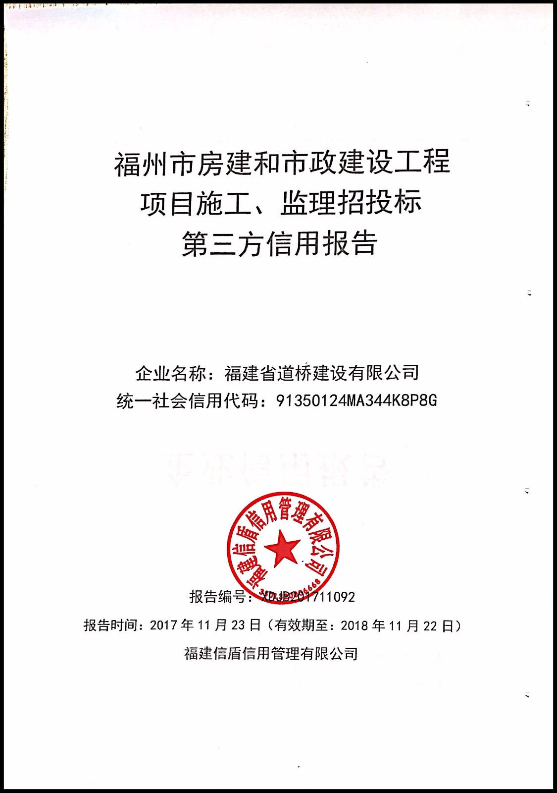 福建省道橋建設有限公司XDJB201711092