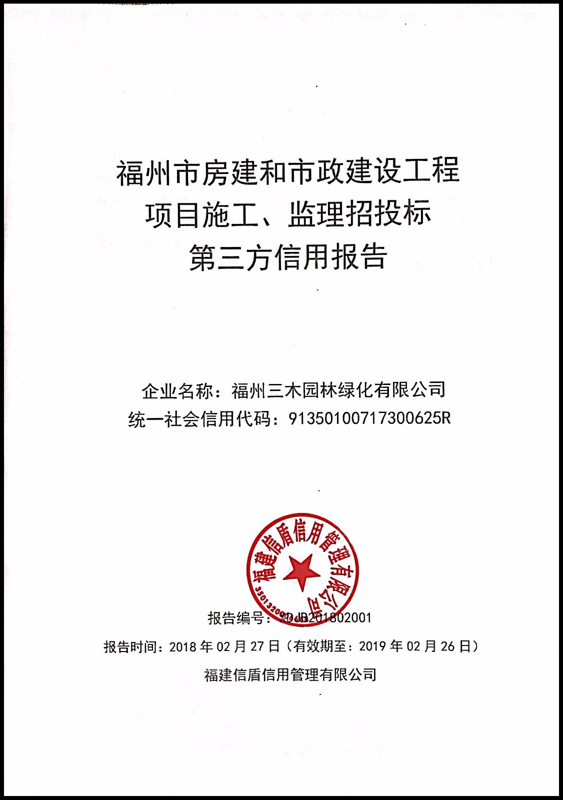 福州三木園林綠化有限公司 XDJB201802001