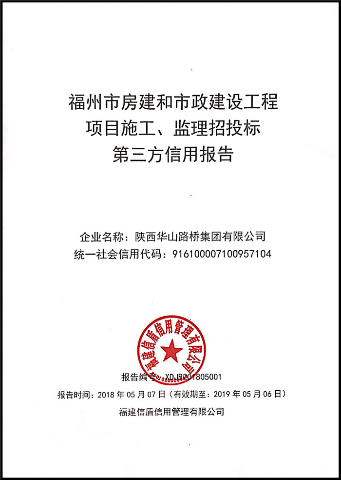 陜西華山路橋集團有限公司 XDJB201805001