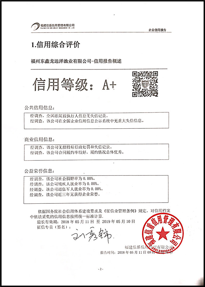 福州東鑫龍遠洋漁業(yè)有限公司 XDBG201805007