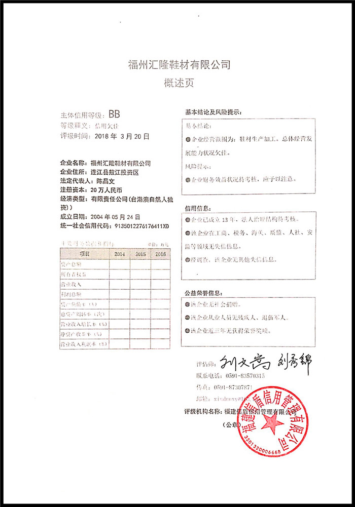 福州匯隆鞋材有限公司 XDPJ201803165