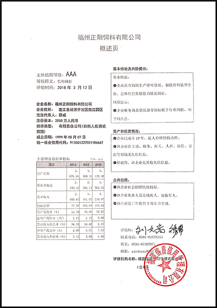 福州正陽飼料有限公司 XDPJ201803186