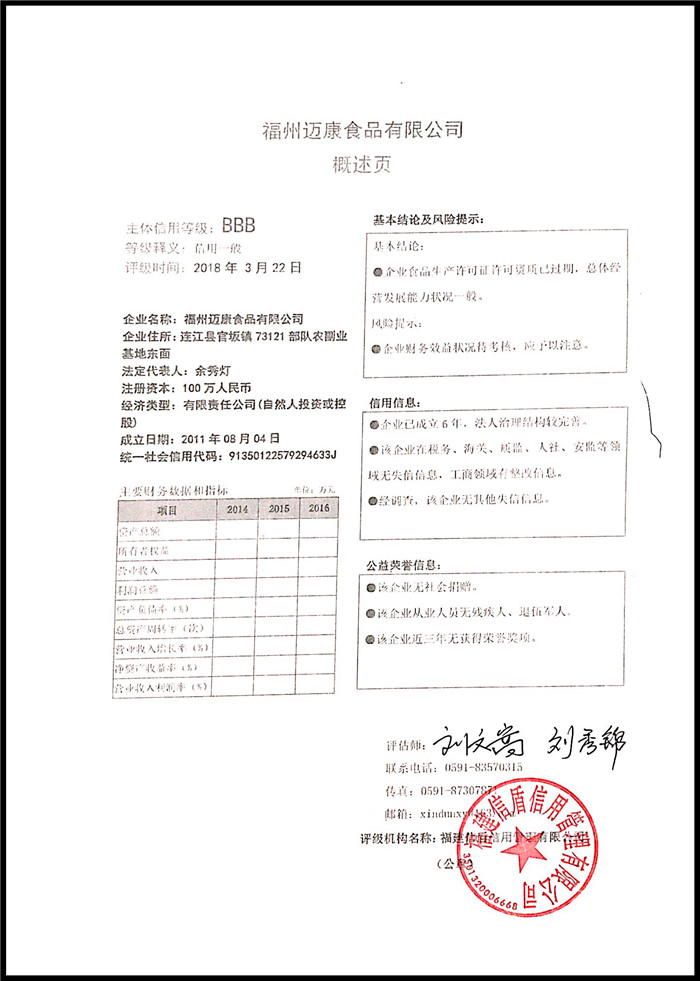 福州邁康食品有限公司 XDPJ201803214
