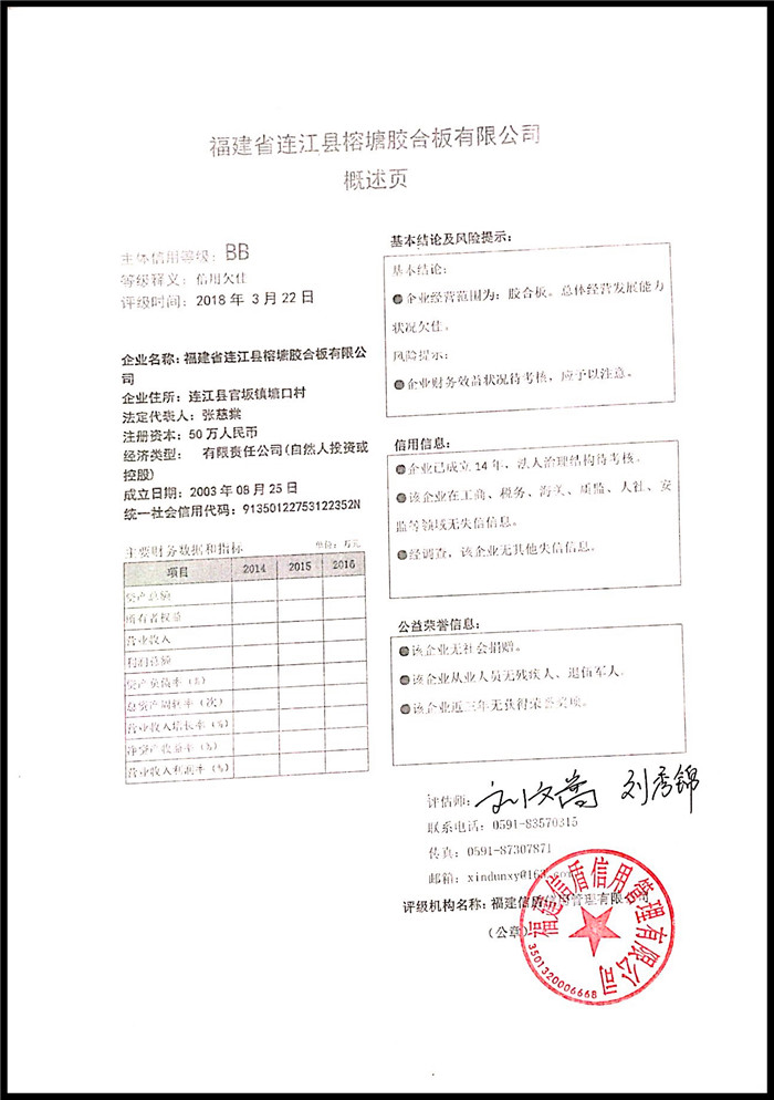 福建省連江縣榕塘膠合板有限公司 XDPJ201803215
