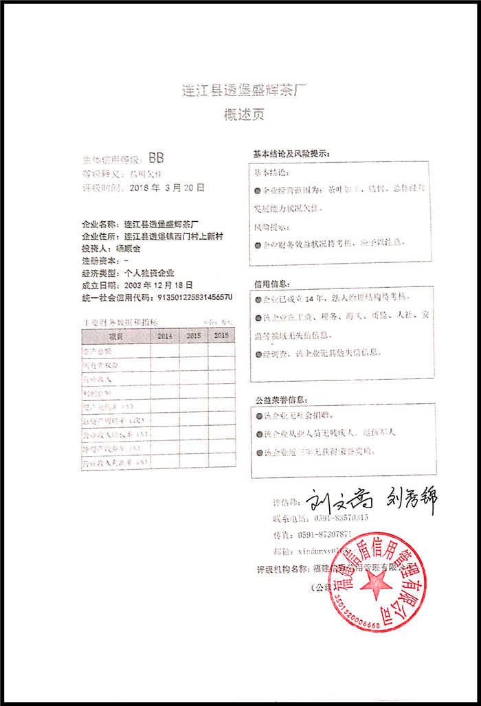 連江縣透堡盛輝茶廠 XDPJ201803222