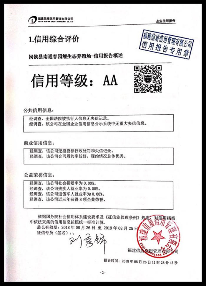 閩侯縣南通春園鯉生態養殖場 XDBG201808007