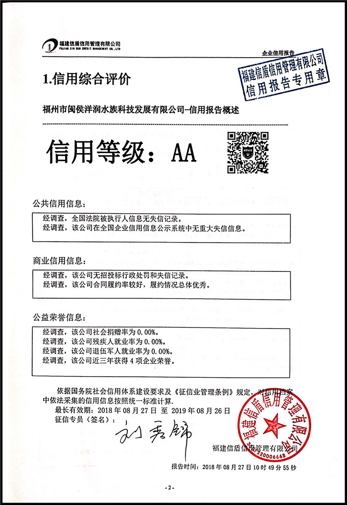 福州市閩侯洋潤水族科技發展有限公司 XDBG201808010