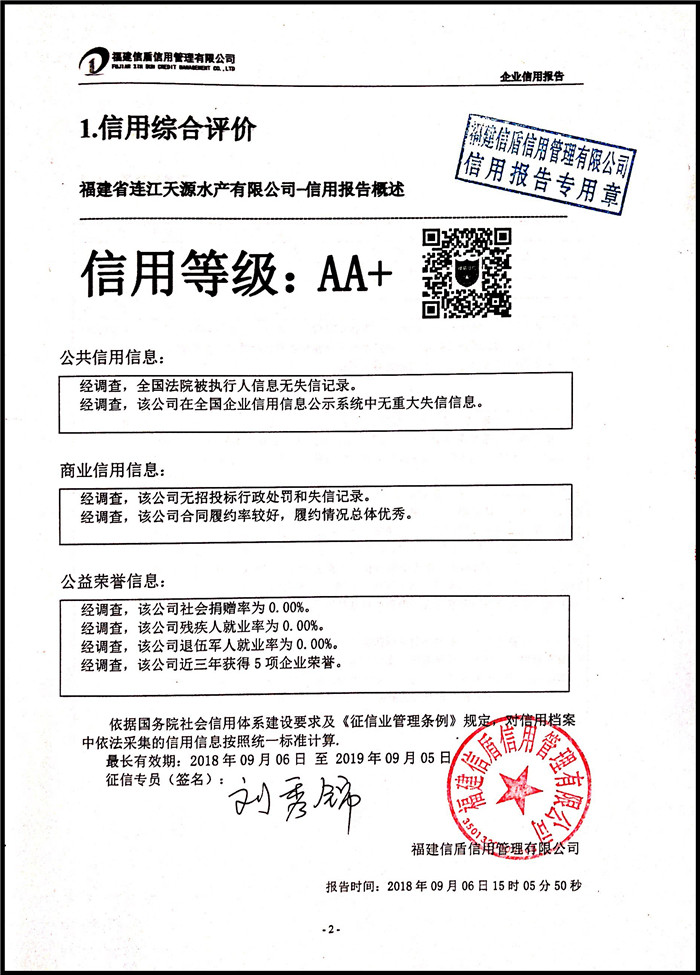 福建省連江天源水產有限公司 XDBD201809009