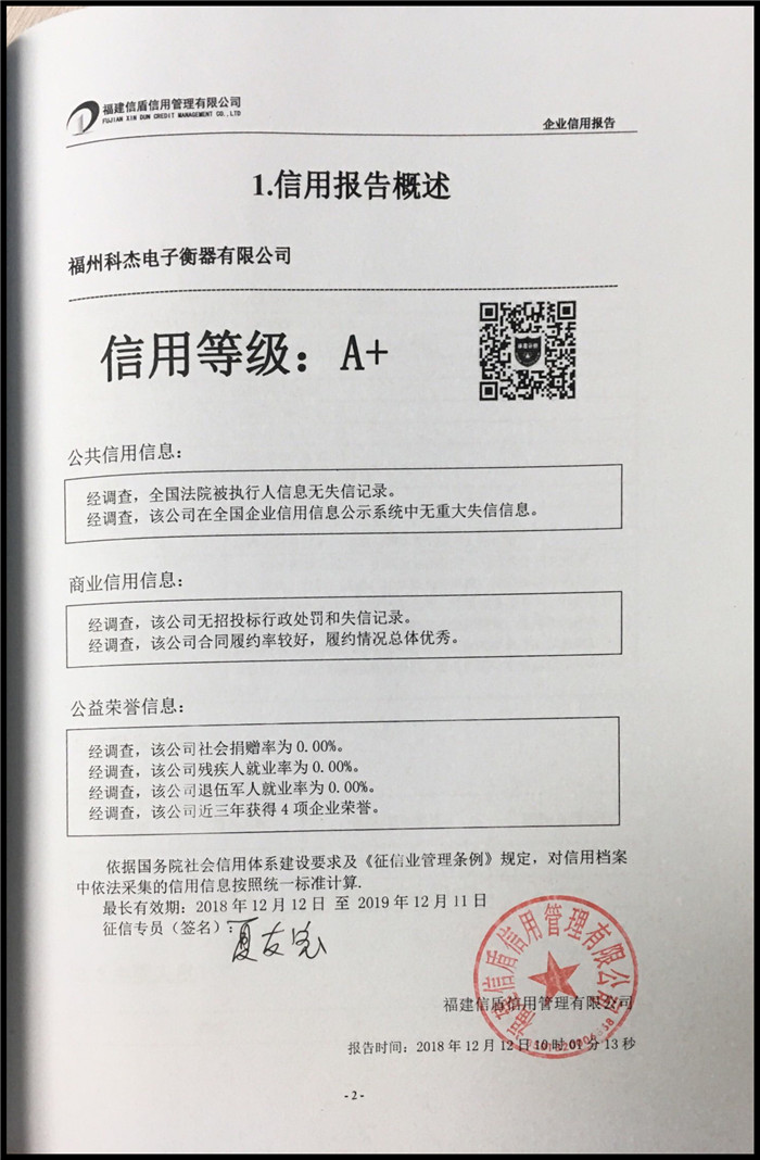福州科杰電子衡器有限公司 XDBG201812120