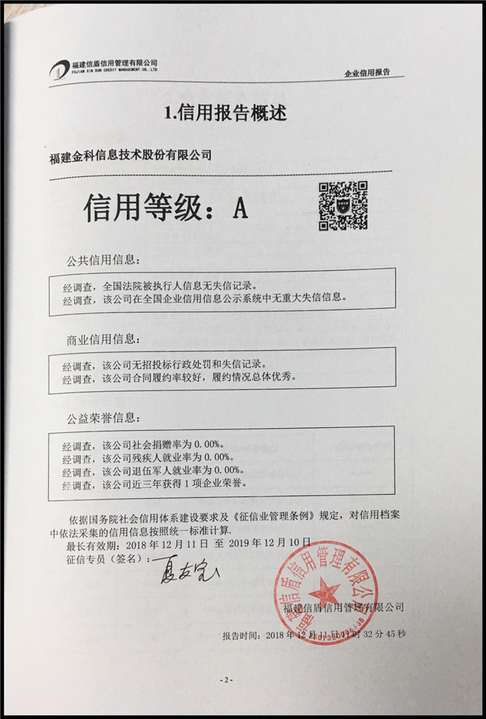 福建金科信息技術(shù)股份有限公司 XDBG201812124