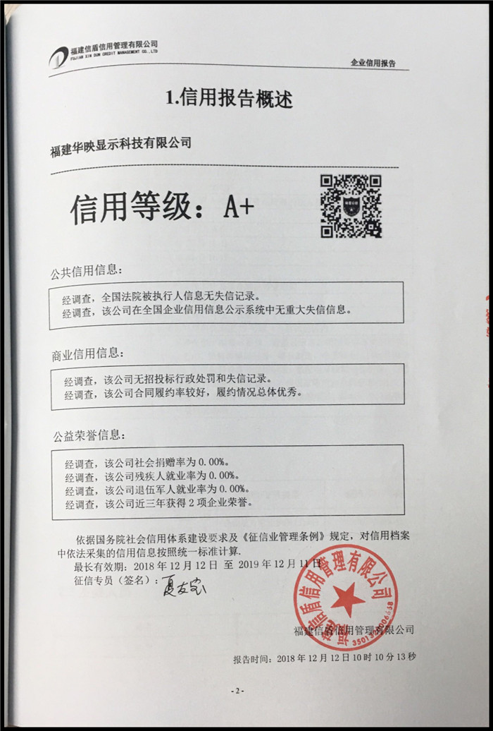 福建華映顯示科技有限公司 XDBG201812101