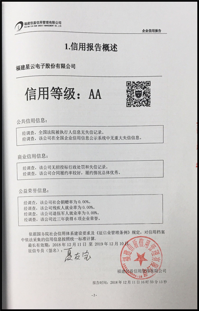 福建星云電子股份有限公司 XDBG201812116