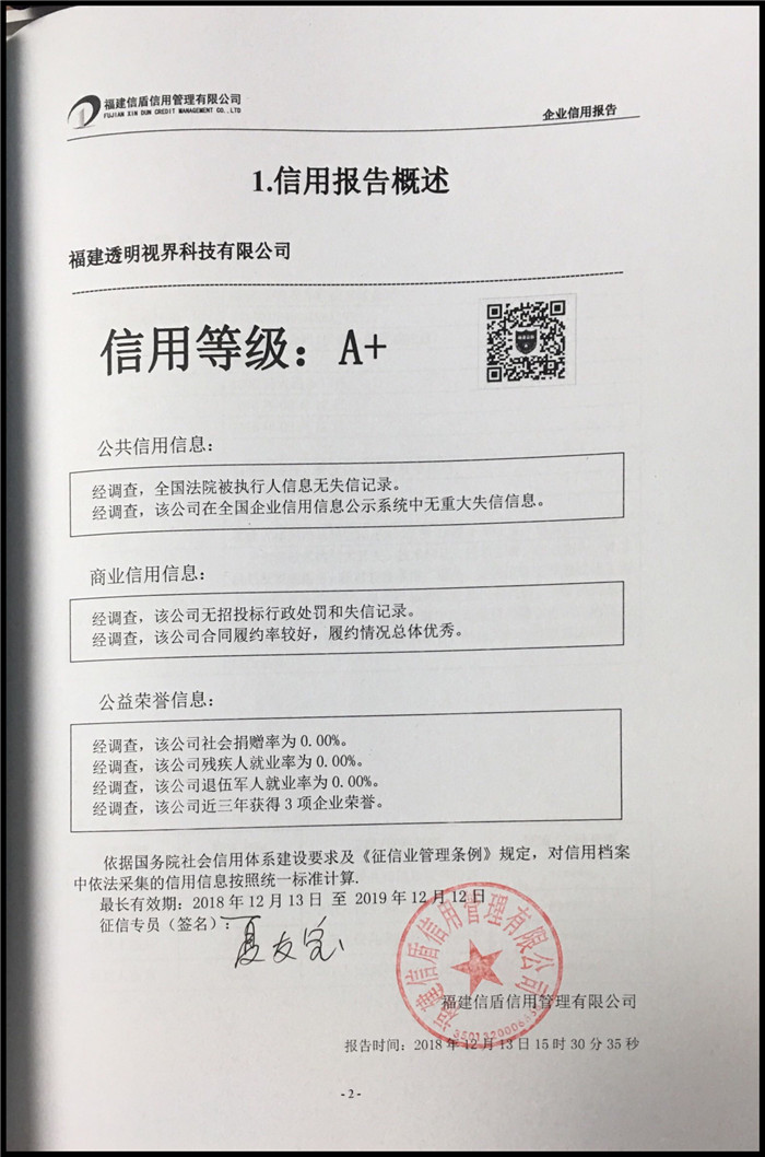 福建透明視界科技有限公司 XDBG201812178