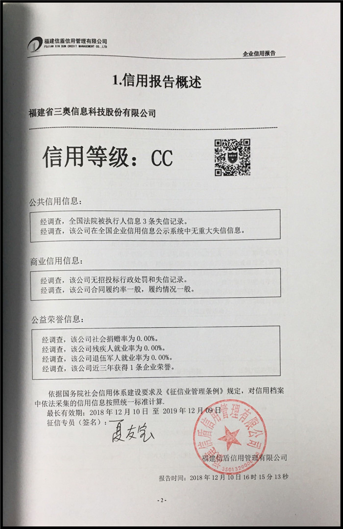 福建省三奧信息科技股份有限公司 XDBG201812165