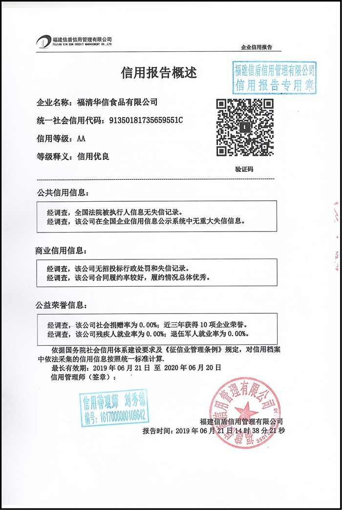 福清華信食品有限公司2019