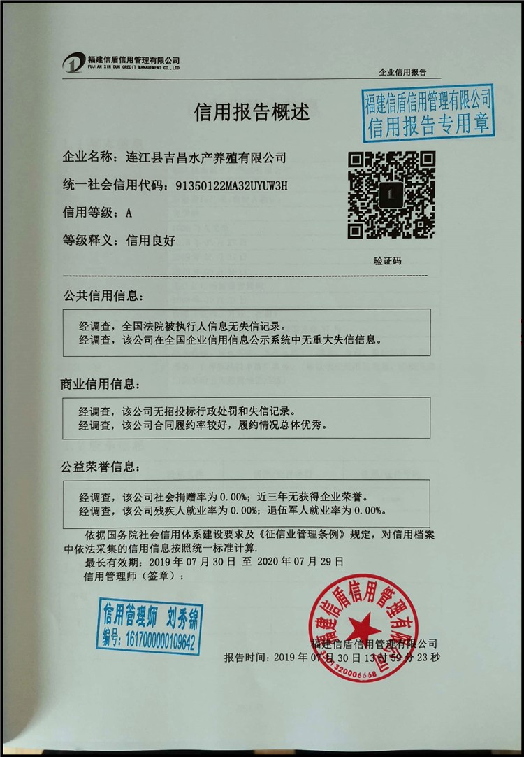 連江縣吉昌水產(chǎn)養(yǎng)殖有限公司2019